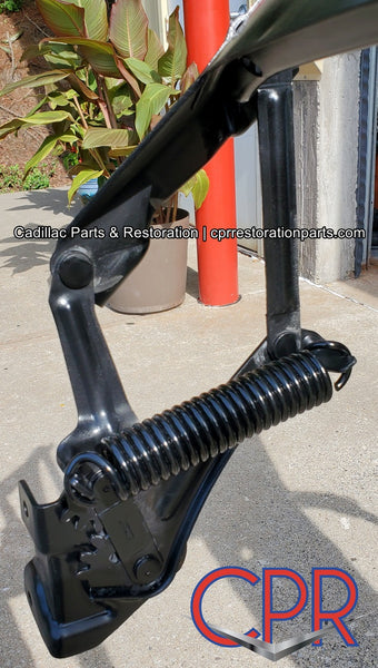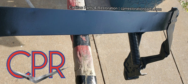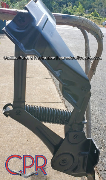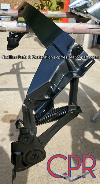 1956 Cadillac Hood Hinge Spring Assembly. Sandblasted and epoxy coated. Correct Satin Gray. Tight rivets and brand new CPR hood springs installed.