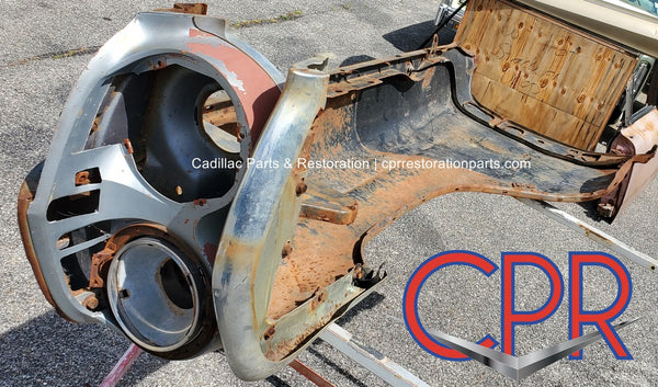 1959 Cadillac fender, right passenger side from Cadillac Parts & Restoration CPR.
