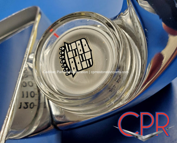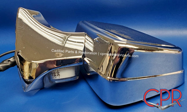 1976 1977 1978 Cadillac Side Rear View Mirror Remote w Illuminated Thermometer - NOS. Driver/Left side. RARE and beautiful NOS part, fits: 1976 Eldorado, Fleetwood Brougham, DeVille, Calais, Fleetwood 75, Fleetwood Limo; 1977 Eldorado only. Part# 3062256.